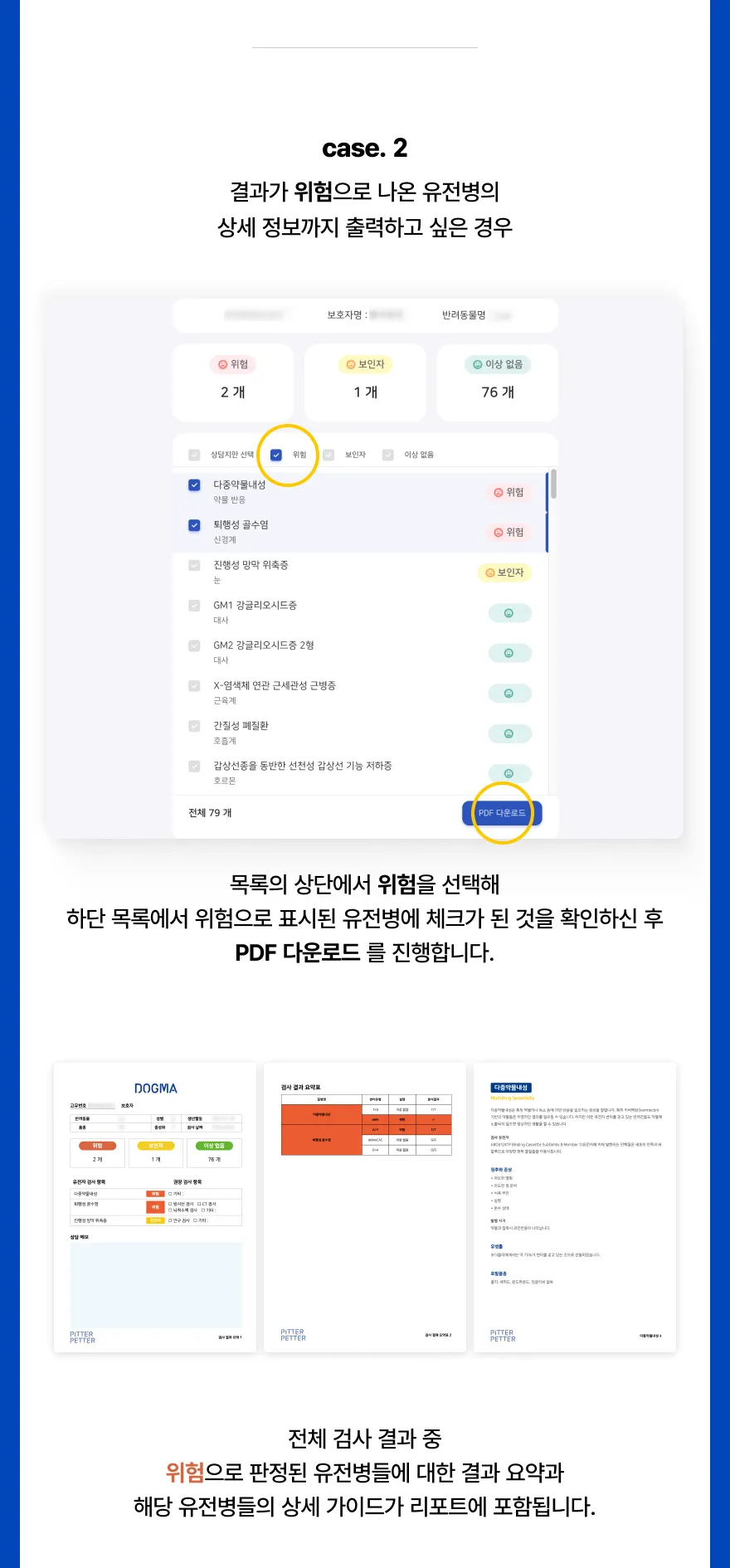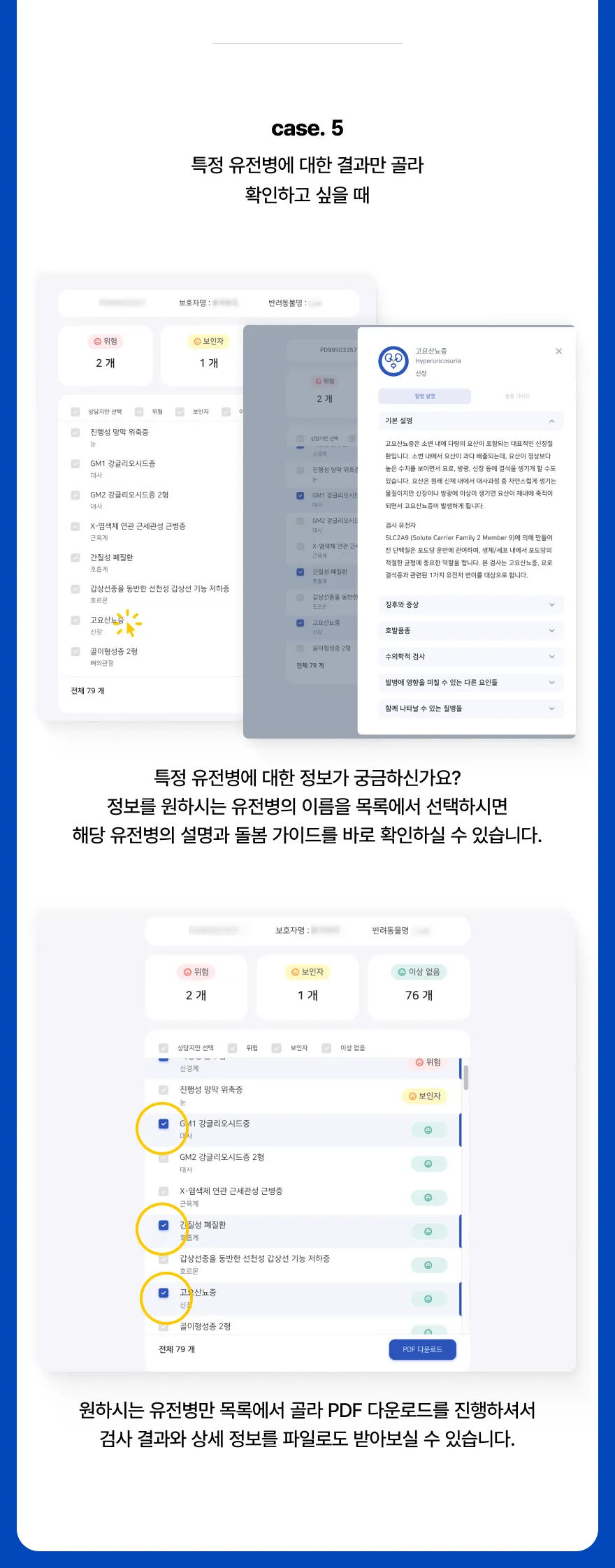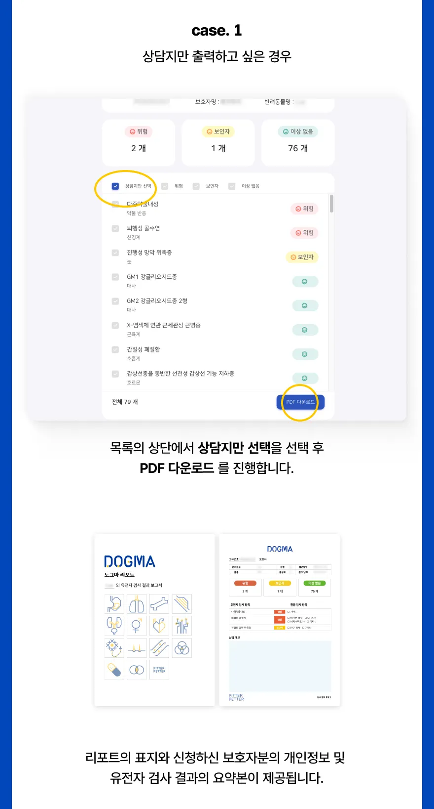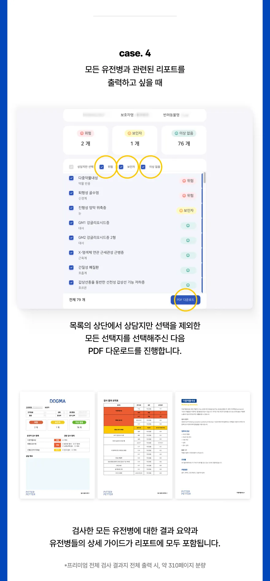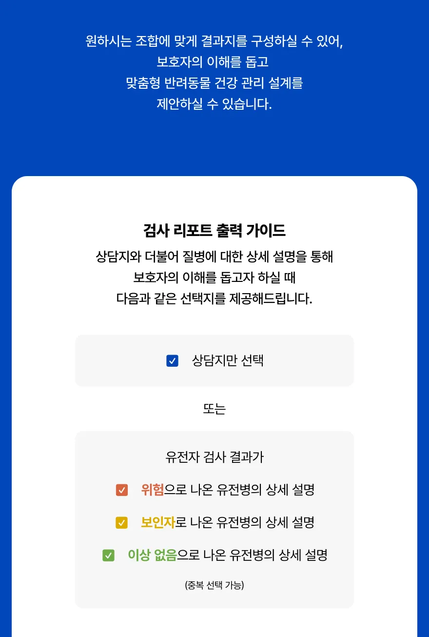 검사 결과 항목을 선택하여 출력이 가능합니다.